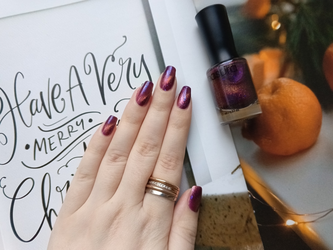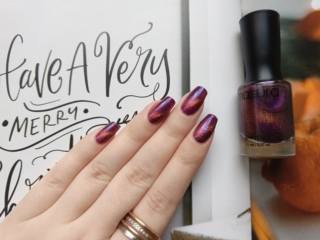 В целом лак довольно плотный. За это я обожаю современные текстуры. Вообще за последний год укрывистость лаков сильно выросла. Оттенок перекрывает ноготь и с первого слоя, но я добавила второй, чтобы сделать более яркий блик.