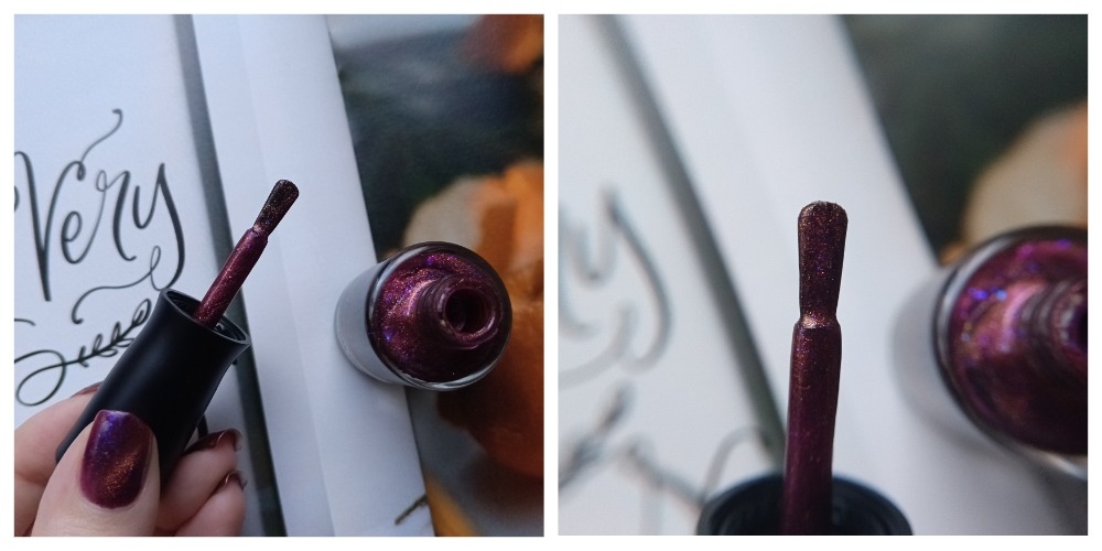 Внешне все как обычно. Съемный колпачок. Объем лака 11 мл. Кисточка приятная, широкая, плоская с округлым срезом. Вообще среди новых выпусков бренда мне не попадались откровенно неудачные кисти.