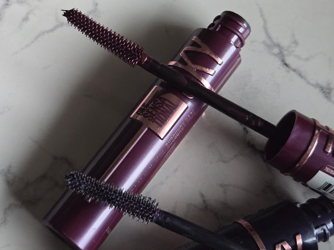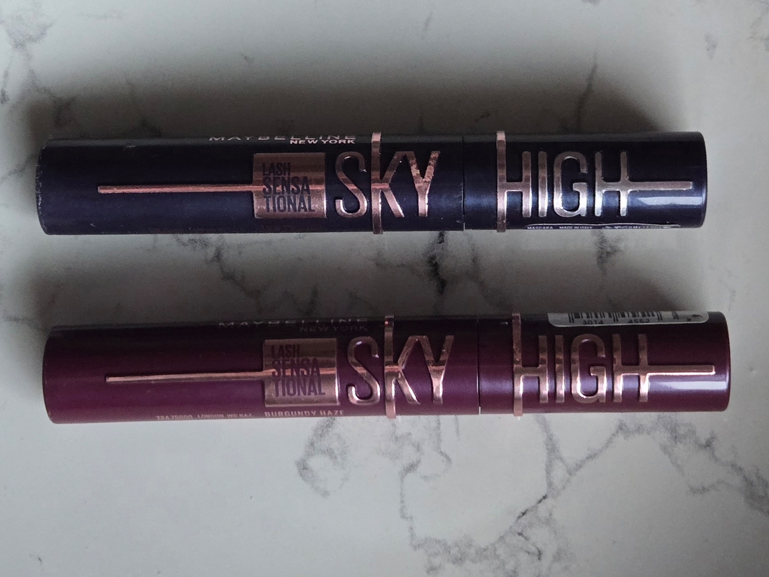 Результат использования туши Maybelline New York Lash Sensational Sky High Washable Lengthening & Volumizing Mascara в оттенках Burgundy Haze и Plum Twilight