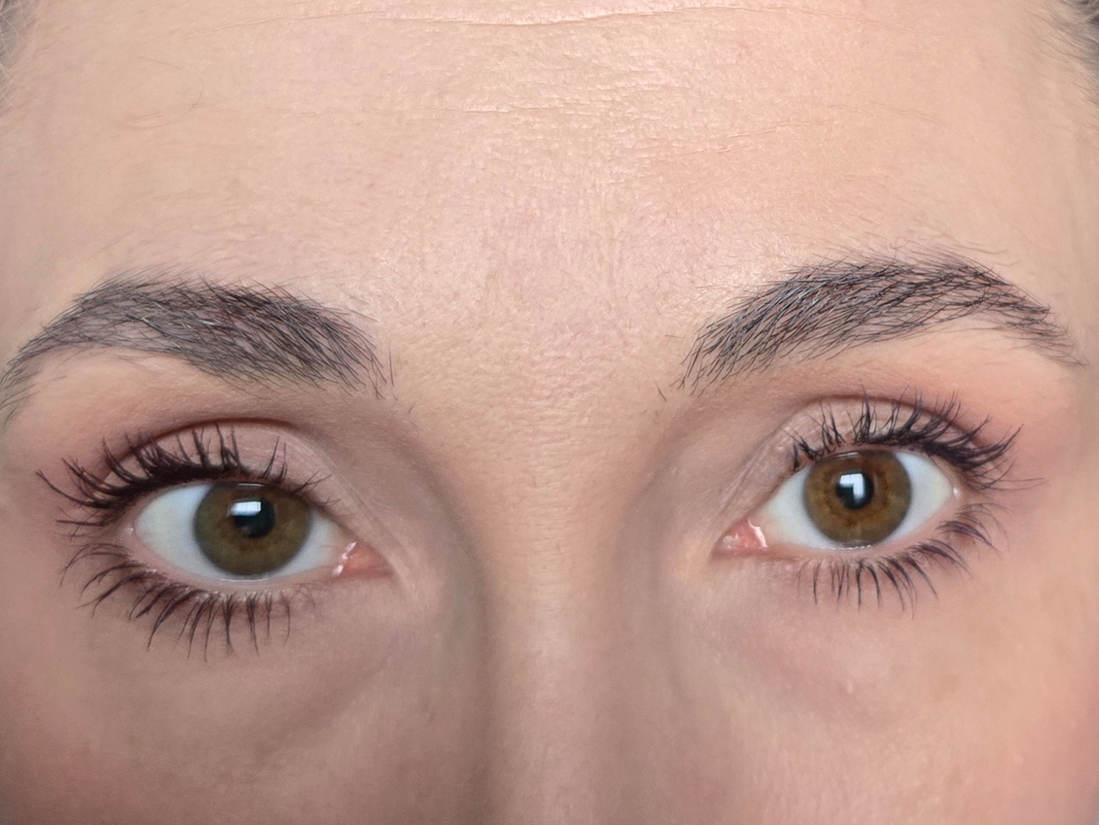 Видно ли ресницы за стрелками? Да! И очень хорошо. До бровей, конечно, не достают, но у меня сами по себе реснички короткие, а брови высоко, поэтому я рада даже такому эффекту.