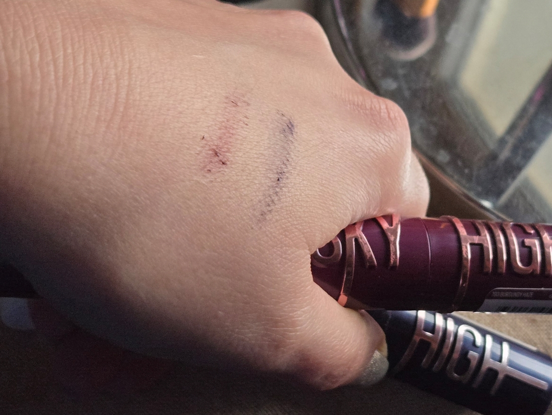 Аромат есть, слабый технический, практически не чувствуется. Текстура у фиолетовой чуть более сухая, а у «бургунди» кремовая.