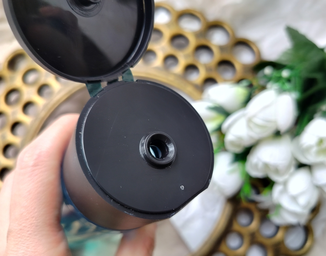Упаковка — стандартной цилиндрической формы флакон, выполненный из полупрозрачного голубого пластика. Крышка флип-топ.