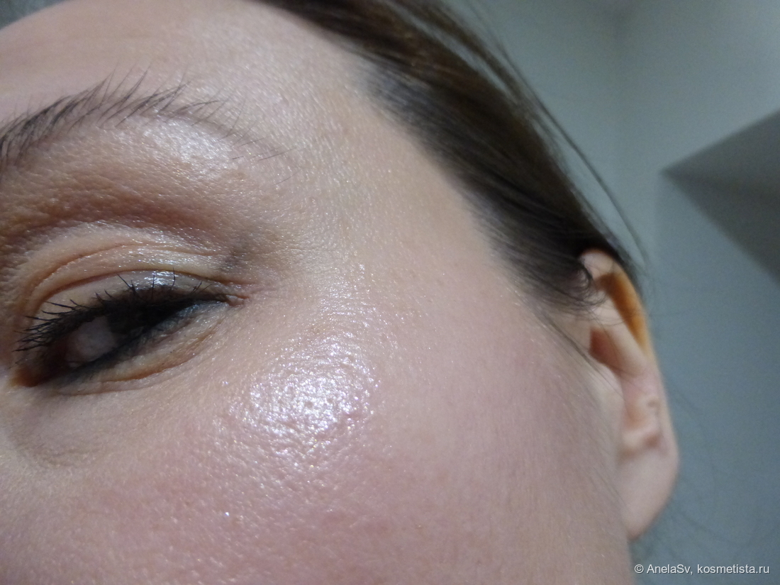 Хайлайтер не подчеркивает текстуру кожи, фиксируется — его можно стереть, но прикладывая усилие, а так он не смазывается ни шапкой, ни волосами. Со временем он чуть тускнеет, но не критично. Удаляется любой мицелляркой без остатка.