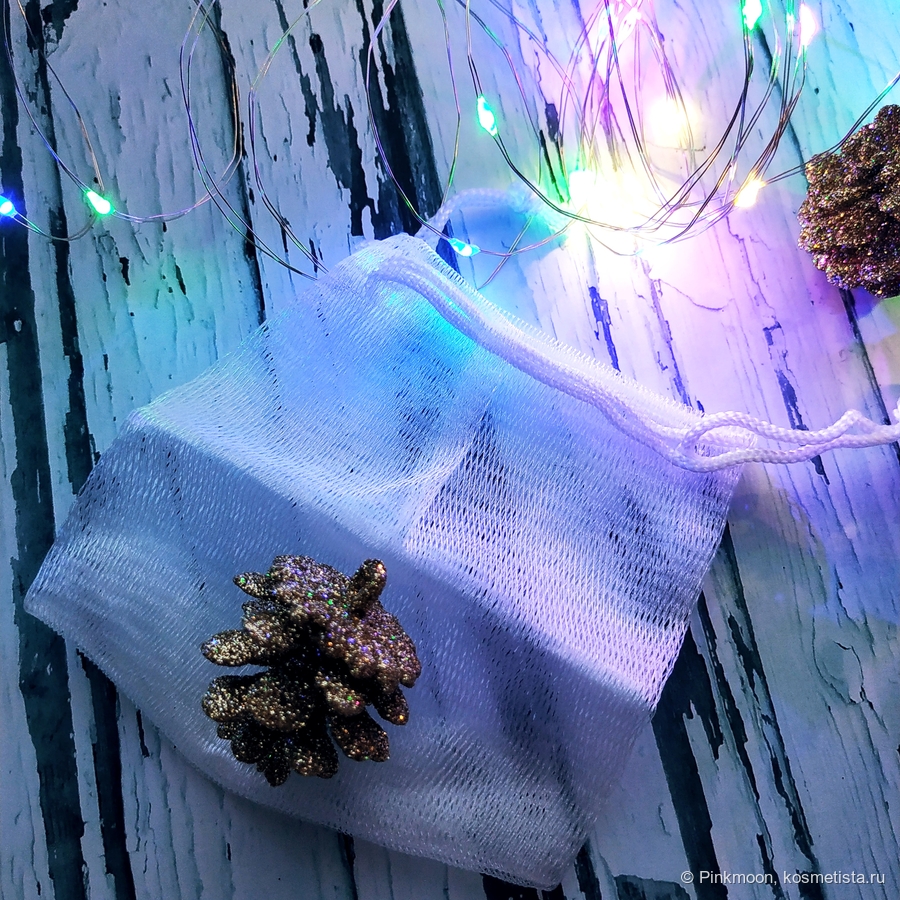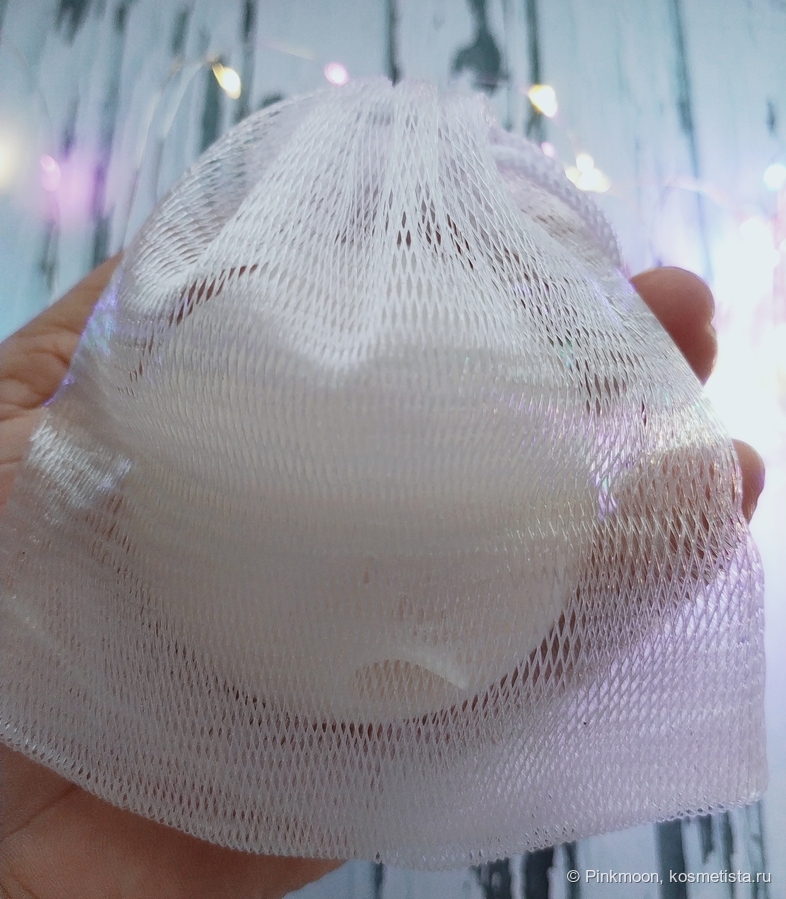 Шар и сам неплохо пенится, а с сеточкой тем более. Пена получается пышной и нежной. Она деликатно очищает кожу лица, даже смывает косметику с век. Мне нравится массировать лицо этой пеной, руки легко скользят по коже, смывая все загрязнения.