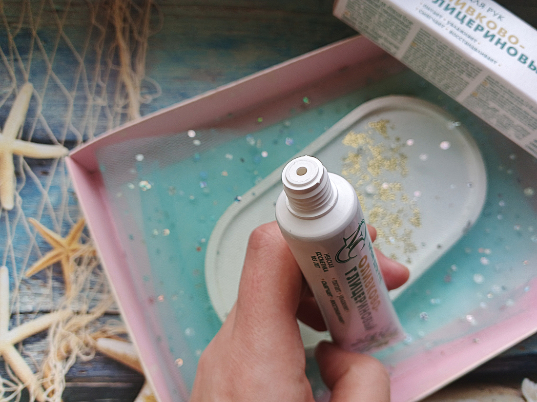 Он быстро впитывается и сразу смягчает кожу рук. Визуально эффект тоже заметен. Руки у меня перестали сохнуть. Крем не оставляет липкости и вполне комфортно ощущается. Глицерин создаёт что-то вроде барьера, который обеспечивает коже мягкость даже после мытья.