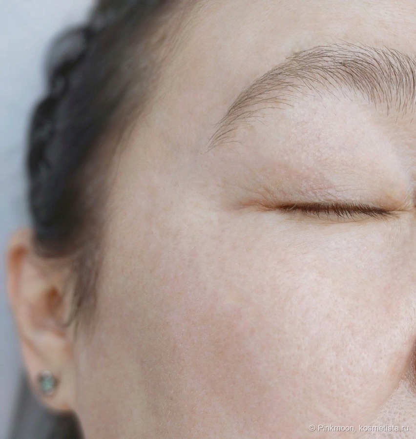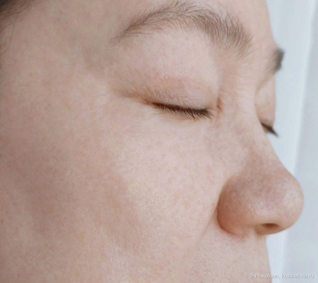 Кстати, сразу после нанесения и впитывания на коже остаётся влажный блеск, поэтому я слегка припудриваю лицо прозрачной пудрой.