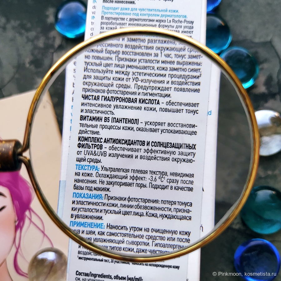 Средство, если нанести его с избытком, оставляет на лице липкость. Поэтому я наношу не очень большое количество. SPF не очень высокий, но для поздней осени и зимы вполне подходит. Есть один нюанс — присутствие охлаждающего эффекта, поэтому наношу его не перед выходом, а примерно минут за 15-20 до выхода. За это время гель впитывается полностью, не холодит и на холодном воздухе не создаёт неудобств. Зато кожа отлично увлажнена, она выглядит посвежевшей, что с утра очень важно, липкость проходит.
