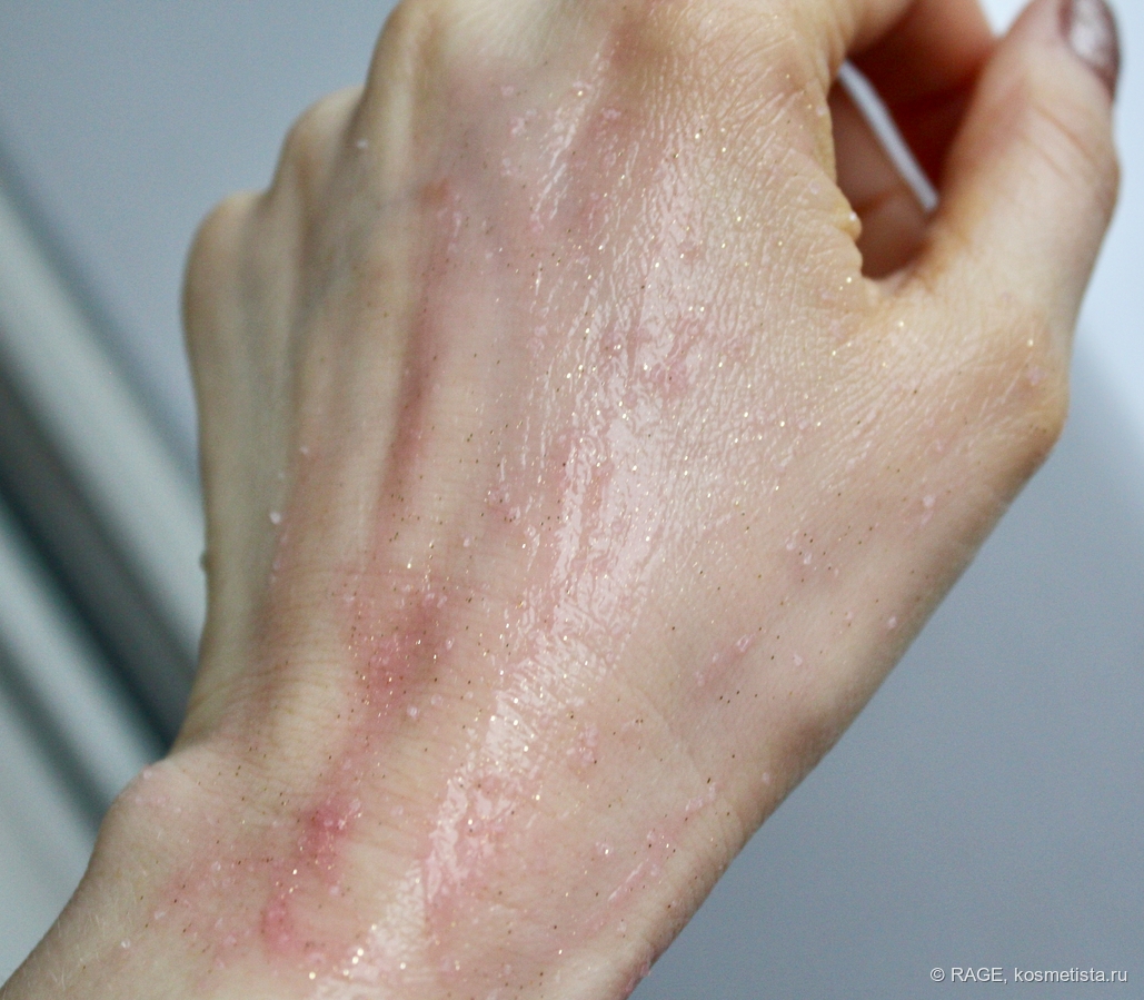 1) Гелевая текстура скрабов хорошо распределяется на коже тела и слегка (совсем чуть-чуть) пенится при смывании. Неприятной липкой/жирной плёнки на коже не остаётся.