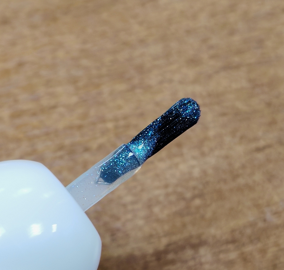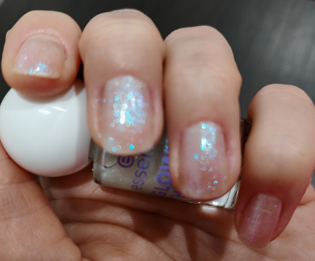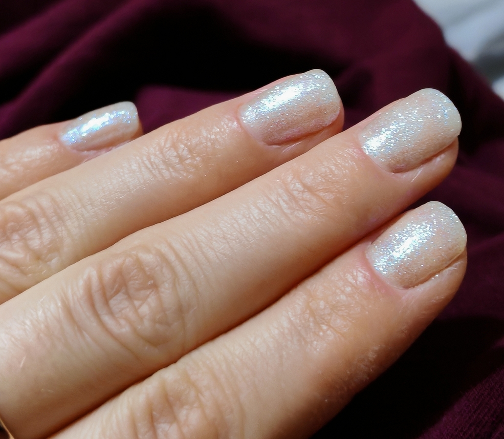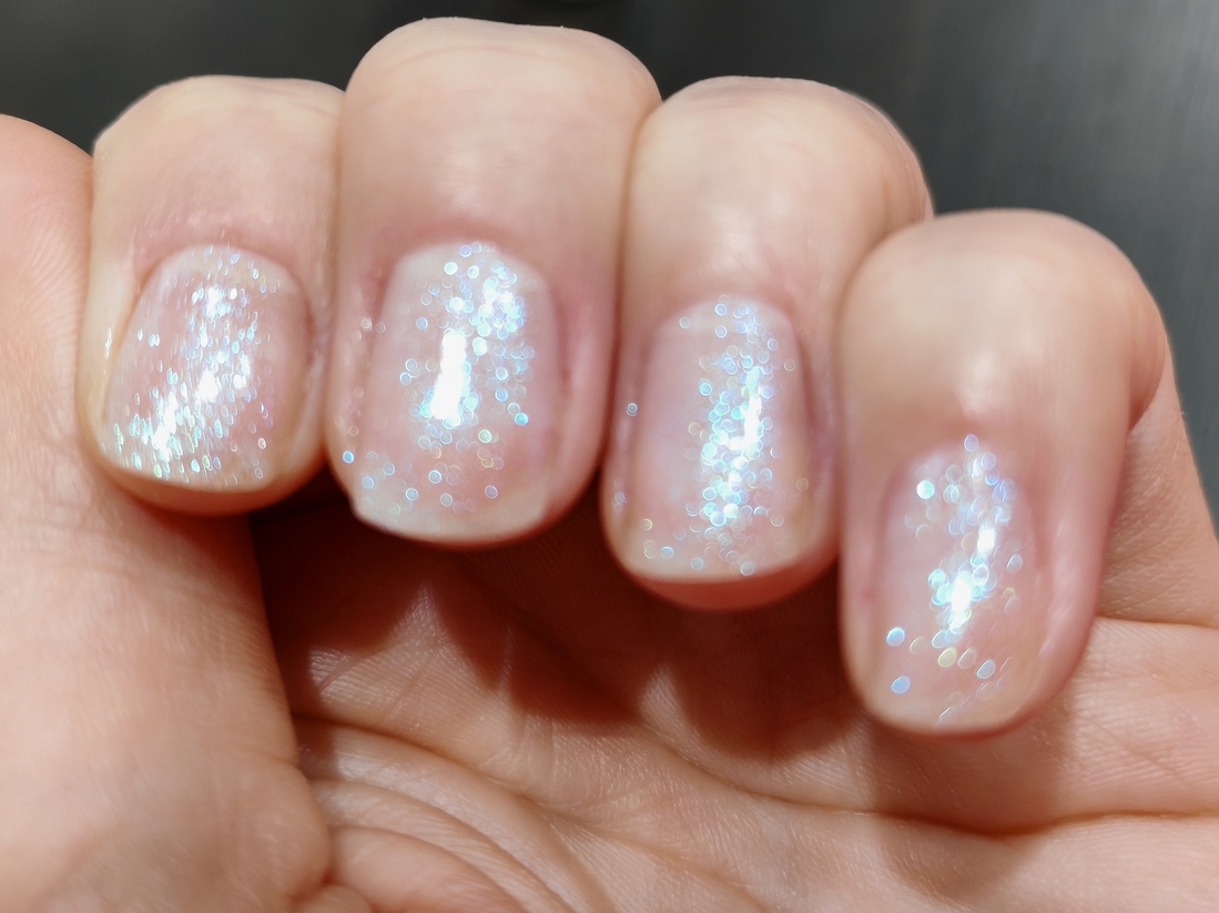 Оттенок представляет из себя россыпь блесток на полупрозрачной базе.