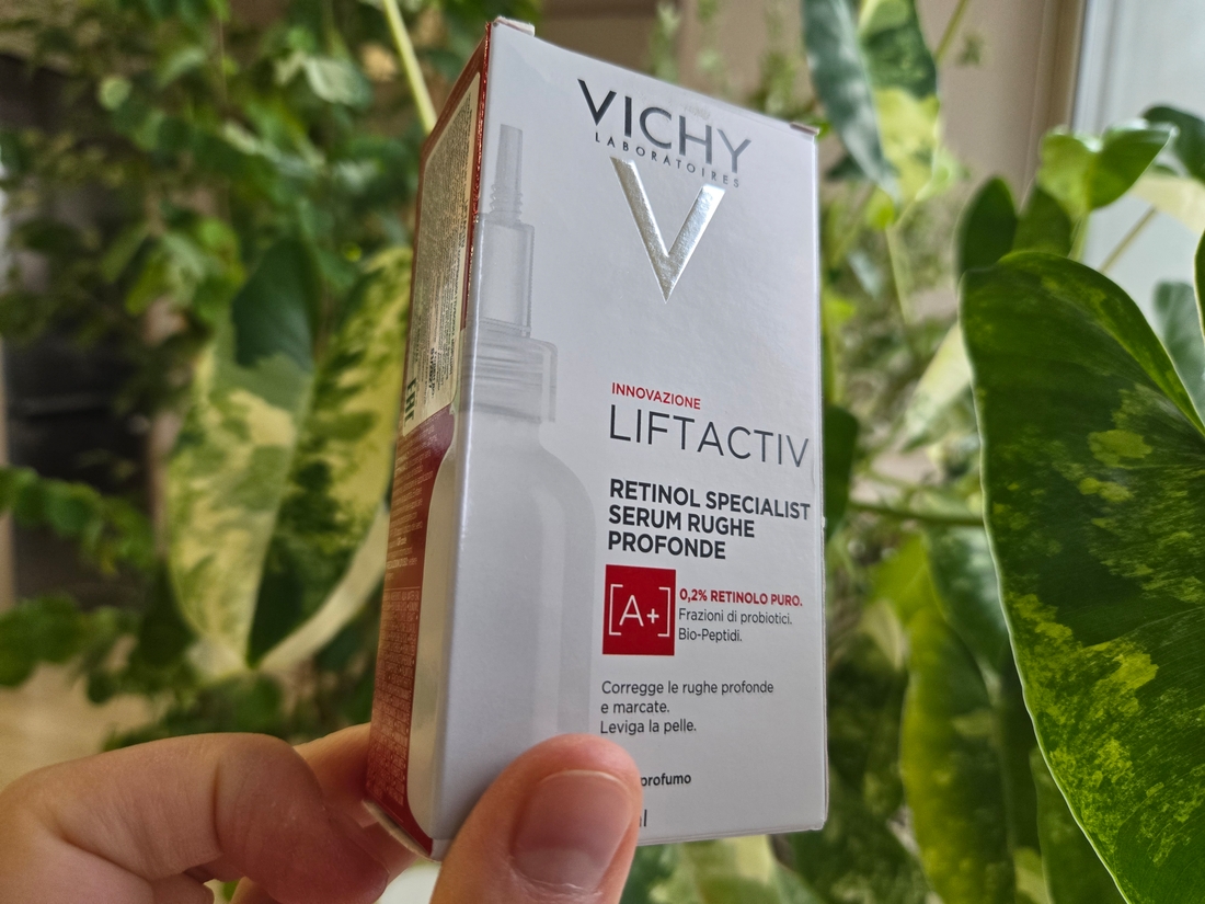 Дальше рассмотрим Сыворотку Liftactiv Retinol Specialist Vichy. Она направлена на коррекцию глубоких морщин и интенсивную борьбу с возрастными изменениями кожи.