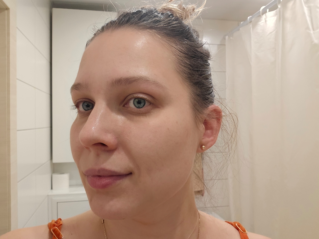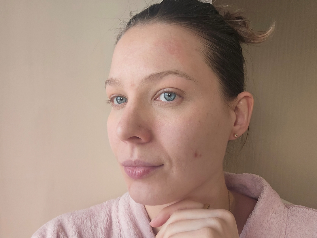 А теперь ещё хочу показать как крем маскирует прям явные косяки на лице. Помните выше я писала как тяжело мне даётся знакомство с ретинолом. Так вот лицо после него сейчас попробуем замаскировать)