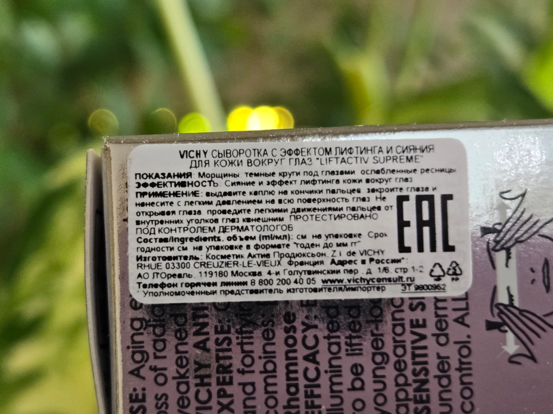 Вторым продуктом рассмотримСыворотку Vichy Liftactiv Supreme Eyes & Lashes, которая разработана для ухода за кожей вокруг глаз и для преображения ресниц.