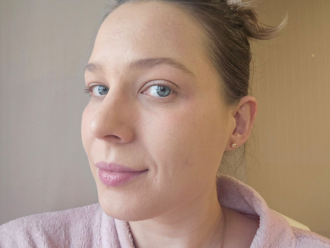 А это после. Видно, как крем хорошо справился с покраснениями и яркими следами постакне. Выровнял тон и сделал лицо свежее,.