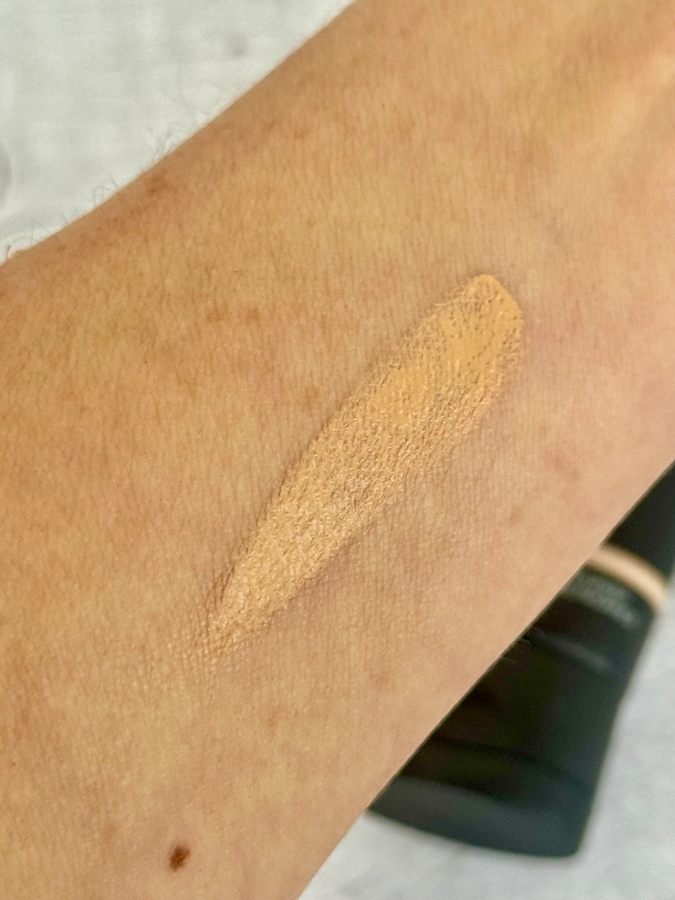 Это бежевый оттенок — ни светлый, ни темный, идеальный практически для любого оттенка кожа. Как-то раз я купила оттенок на тон светлее, потому что решила, что зимой, когда лицо у меня не тронуто загаром, этот оттенок будет выглядеть на нем более органично и естественно. Но фокус не удался и я поняла, что все-таки он для меня слишком уж светлый смотрится как-то неестественно.