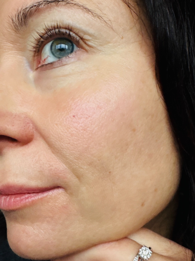 И этим пунктом крем также хорошо справляется — тональное средство очень хорошо распределяется по коже, на которую нанесён этот увлажняющий крем, он ложится, не подчёркивая шелушения, потому что с ними уже справился крем.