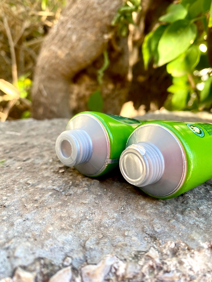 Крема стоят на крышке и имеют защиту от первого вскрытия на горлышке. Само горлышко — большое, крем подаётся в оптимальном количестве. Ничего не засыхает по краям и не затрудняет подачу.
