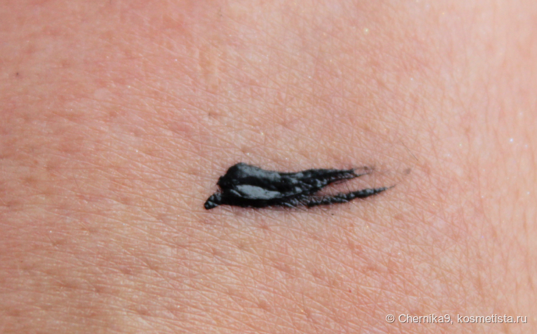 Эта тушь с первого раза делает ресницы больше, но она же на них налипает. Неприятный эффект не будет сильно заметен с тёмным тенями, но поможет создать образ ожившей новогодней куклы.