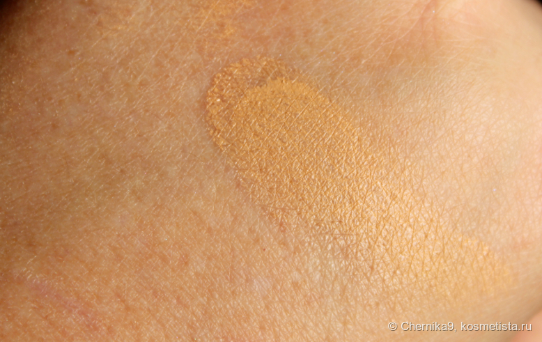 Это матовый оттенок, который легко тушуется. Мне он был нужен для того, чтобы сгладить переход от теней к естественному цвету век. На свотче этот цвет выглядит так.