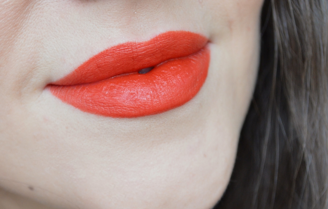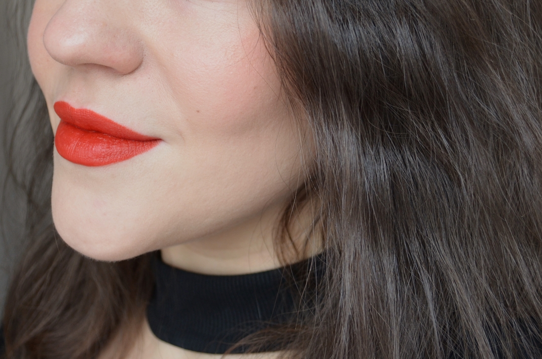 Помада не схватывается в ноль, она остаётся подвижной на губах и оставляет следы на чашках, людях и котах. Да и не выглядит она матовой на губах — она сатиновая. Сатиновая, и хоть ты тресни!