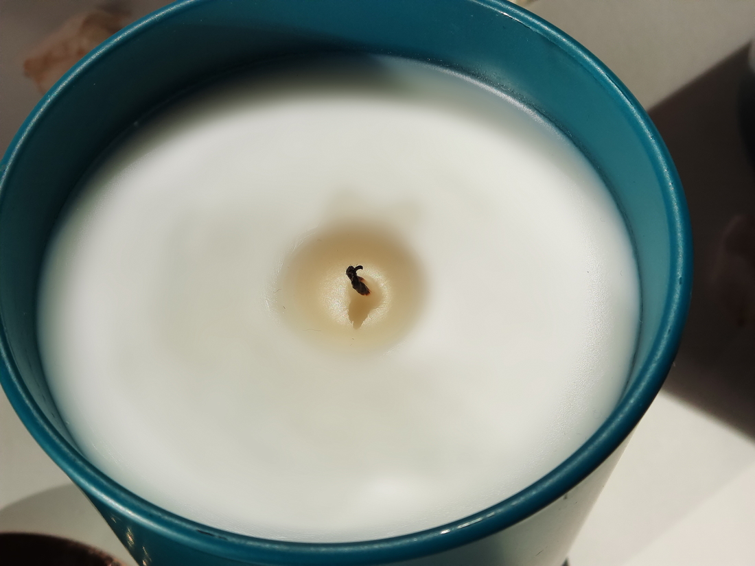 Каждый раз после использования подрезаю фитиль, чтобы пламя было ровным и не было тёмного дымка. Тушить свечу лучше всего крышкой, накрыв стакан.