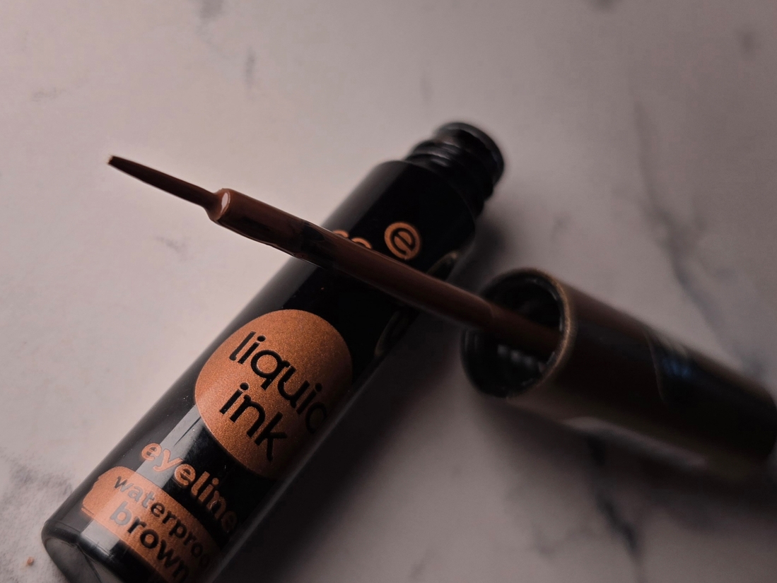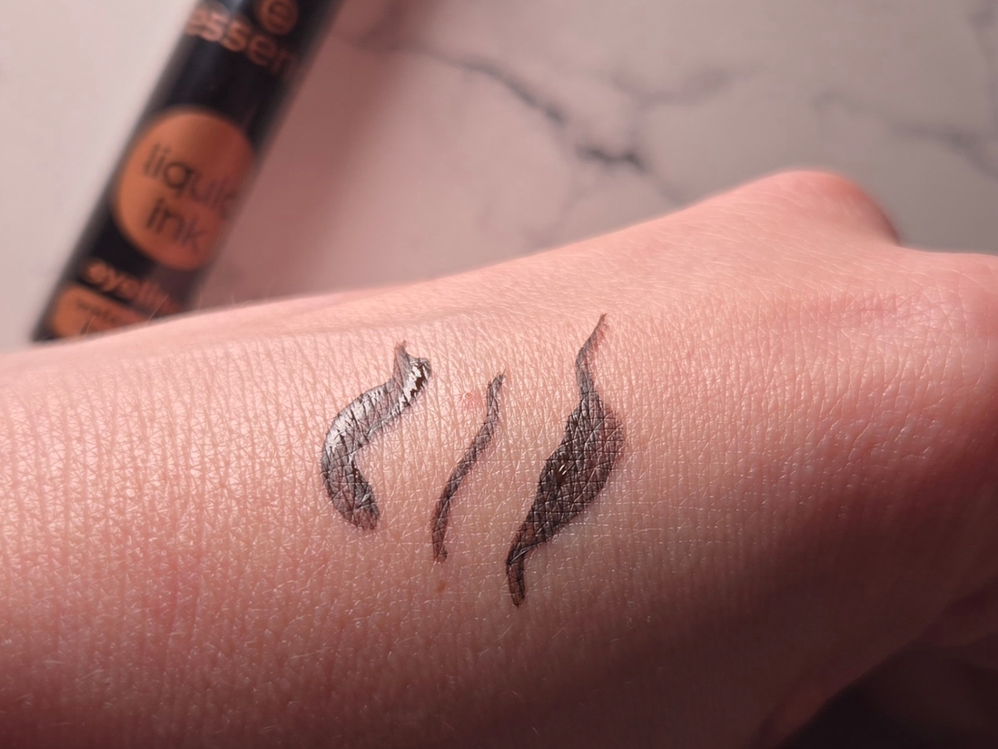 Отдельно хочу сказать, про «не раздражает глаза». У Эссенс есть 2 варианта коричневой подводки: божественная эта, купленная по совету Марины Лакшес, и вторая. И насколько хорошо сделана эта, как она быстро застывает, как приятно её наносить и носить в течении дня, так же катастрофически плохо сделана вторая: при нанесении вызывает слёзы из-за огромного количества алкоголя, слёзы её растворяют и так по кругу. В целом, неудобно пользоваться.