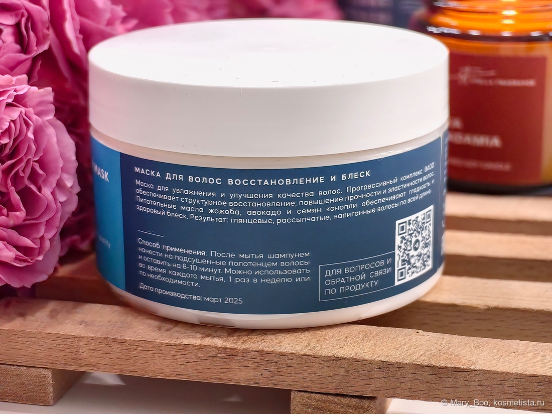 Маска мне показалась неплохой и вполне рабочей: волосы мягкие, расчёсываются легко, выглядят напитанными, а кончики — увлажнёнными. Накопительного эффекта я не заметила, но возможно, это связано со степенью убитости моих волос. Волосы как не секлись до использования маски, так и после добавления ее в уходовую рутину сечься не начали.