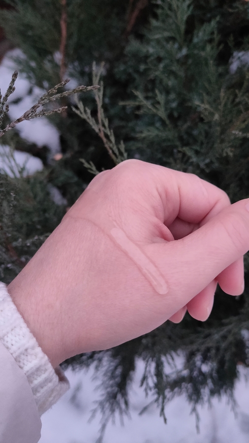 Немного склизкая такая, обвалакивающая. Достаточно жидкая и хорошо распределяющаяся.