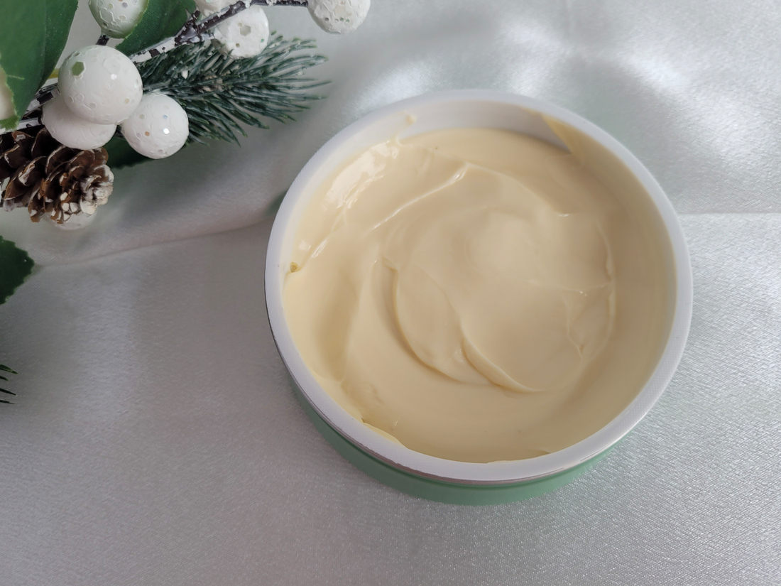 Текстура очень густая, такая питательная. В теплом помещении она ощущается мягче, когда баночка находится в более прохладном месте — то и сам баттер уже тверже.