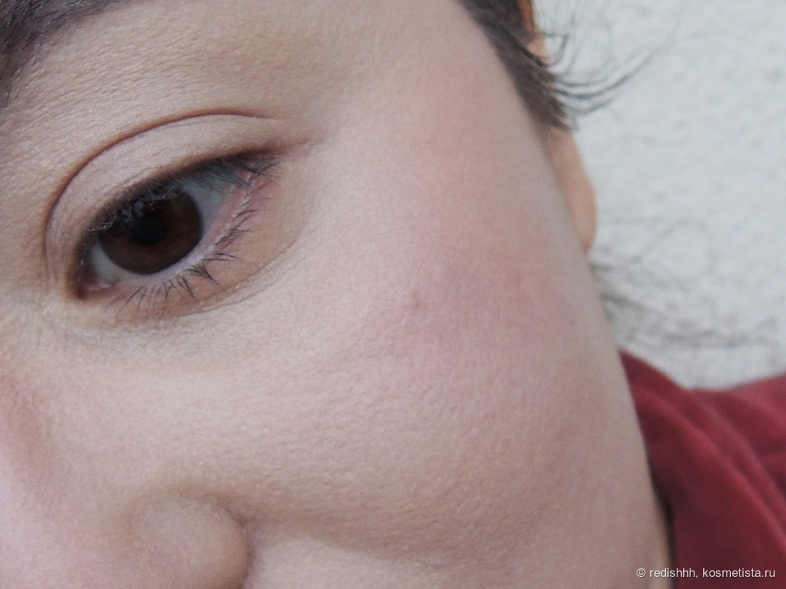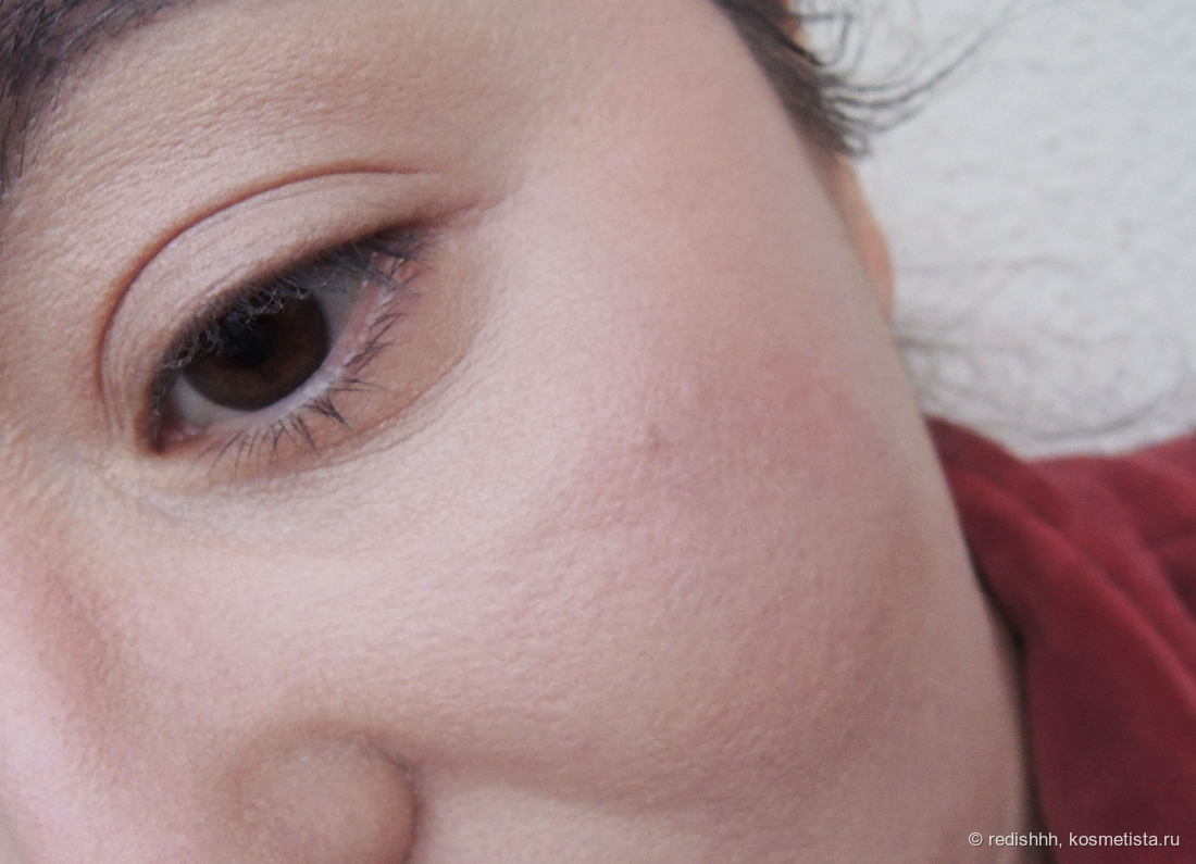 Еще одно «после»: здесь лучше видно матовый эффект от пудры. При этом кожа не пересушена. Не подчеркнуты никакие проблемки. Кожа выглядит и ощущается бархатной.