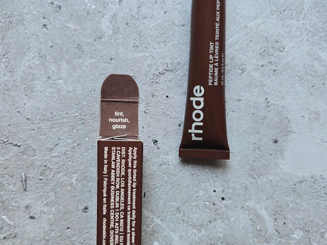 Теперь к конкретному тюбику с конкретным оттенком. Боюсь наврать, ну, как минимум нужно упомянуть, что не первыми были Rhode на рынке с пептидными бальзамами для губ, до них были Grown Alchemist и Allies of skin, но именно у Rhode получилось сделать бальзамчик для губ с капелькой цвета в тюбике средством, которое хочет каждая встречная-поперечная девушка. Сейчас уже можно сделать выбор блеска подобного типа в других марках, но они воспринимаются немножко подражателями (хотя и тюбики существовали до Rhode, и пептиды в средствах для губ).