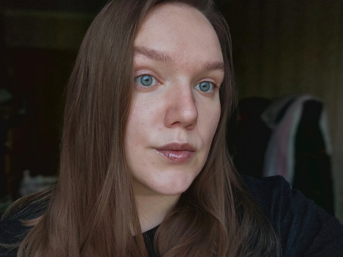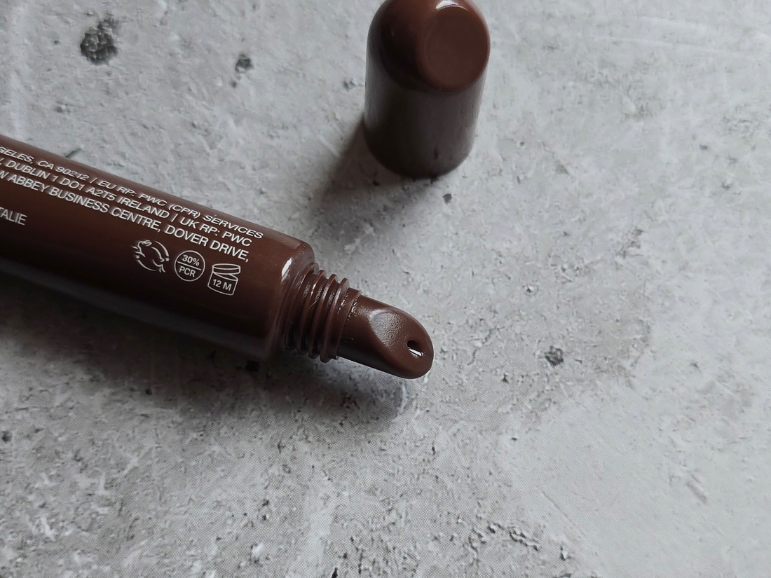 Я люблю блеском Espresso немного корректировать асимметрию моих губ (такая серость на удивление хорошо визуально создает контур губ там, где его нет, примерно так же работают серые карандаши для бровей, только они матовые). На удивление, при всем блеске и глянцевости, бальзам хорошо держится за губы, контур, нарисованный им, визуально считывается. Блеск не течёт, лежит, где положили.