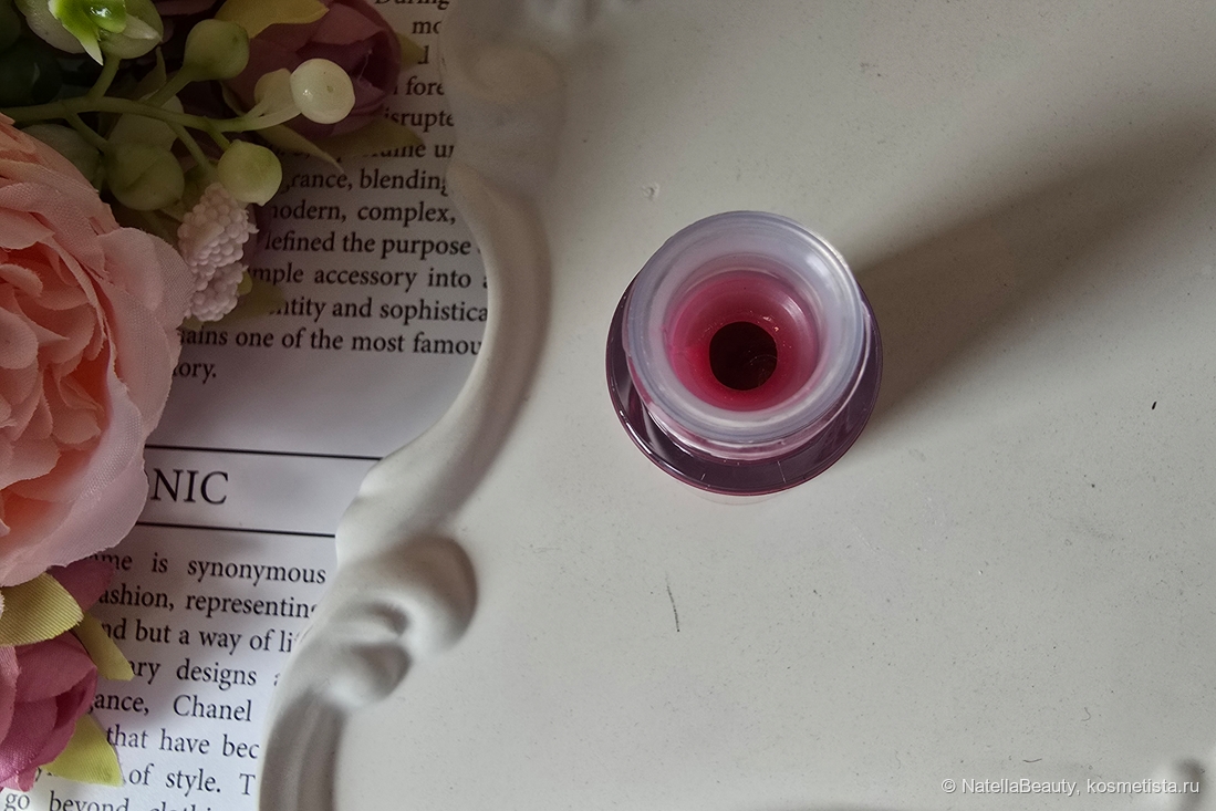 Текстура приятная, не жирная, не ощущается на губах. Не подчеркивает сухость и шелушения, сглаживает их, разглаживает рельеф губ и придаёт эффект глазированных губ.