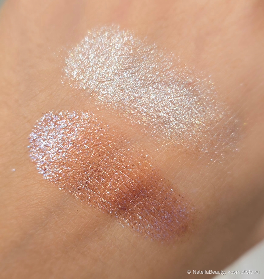 Оба оттенка легко наносятся, не «жуют» веко, не скатываются (я наносила на остатки консиллера), не осыпаются, не блокнот в течении дня.