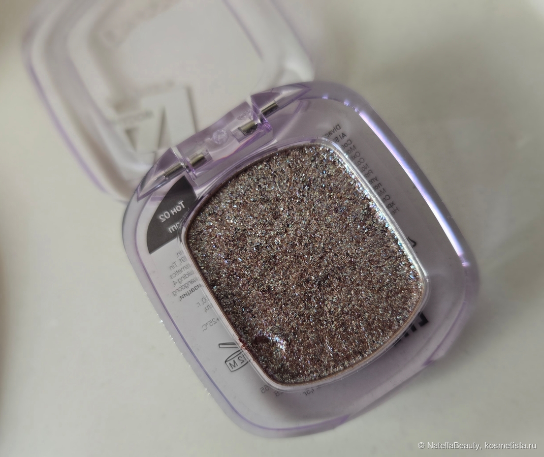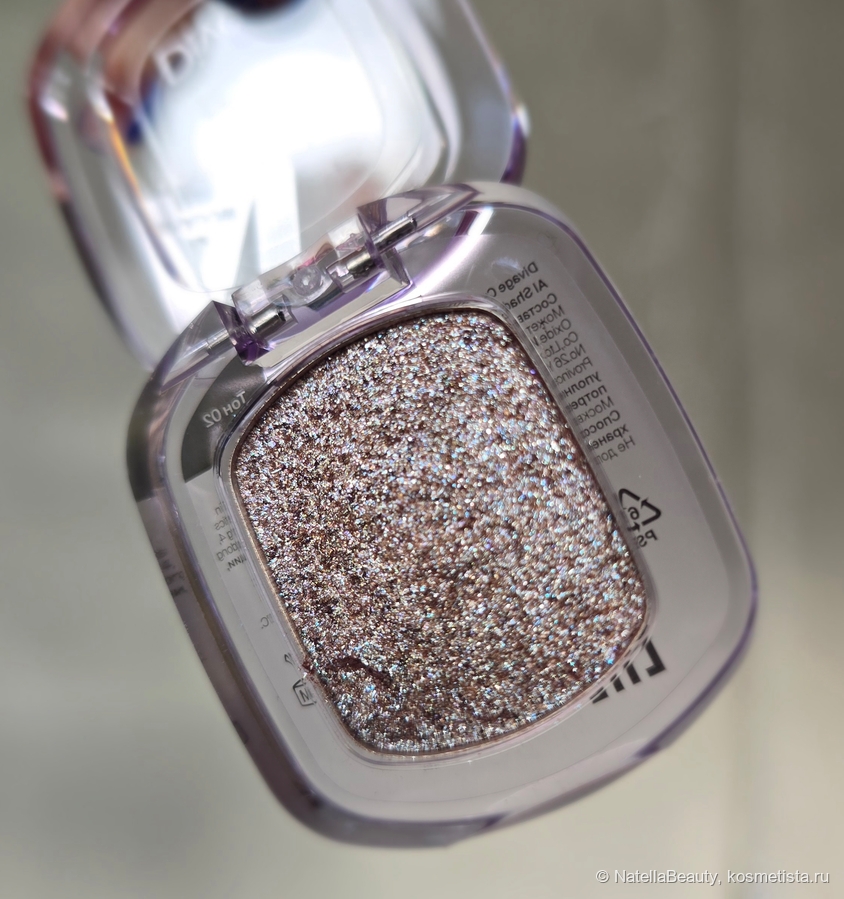 Оттенок 02 Bloom — розово-коричневая база с фиолетовыми мерцающими частицами. Очень красивый повседневный оттенок.