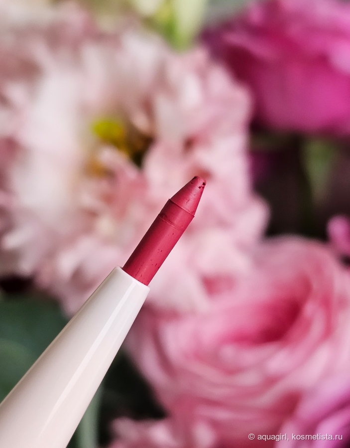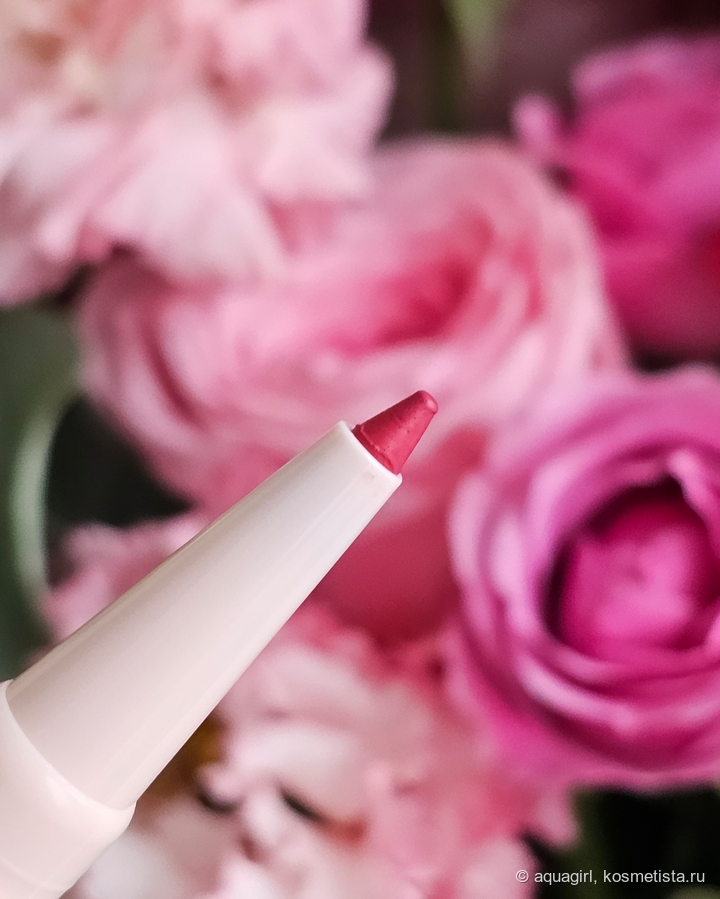 Оттенок вишнёвый, финиш матовый. Стойкость феноменальная, карандаш схватывается за несколько секунд и прочно держит контур.