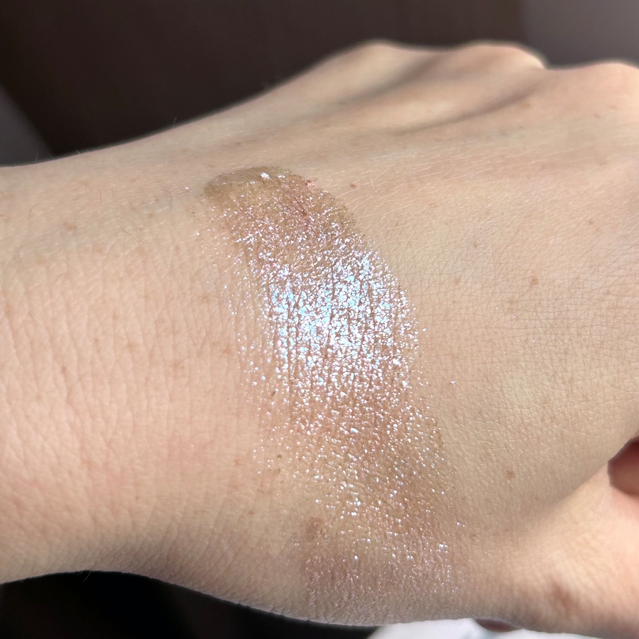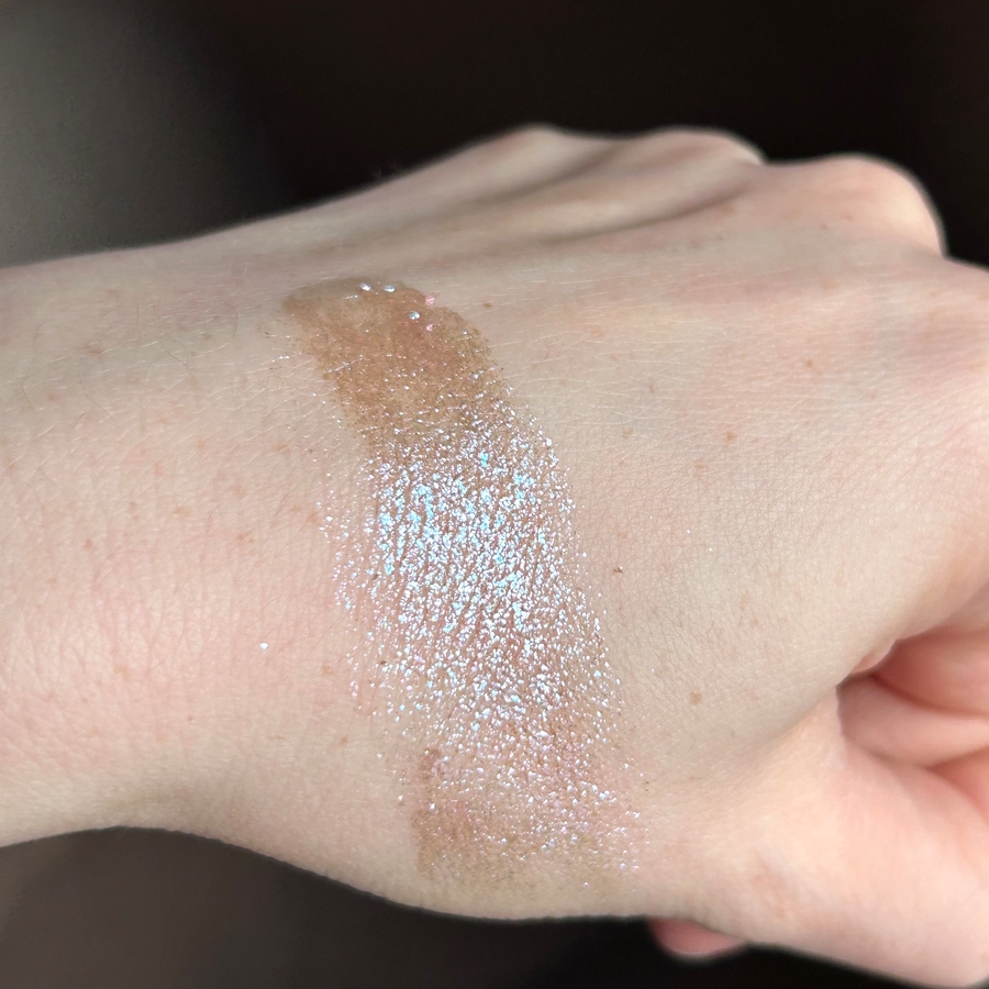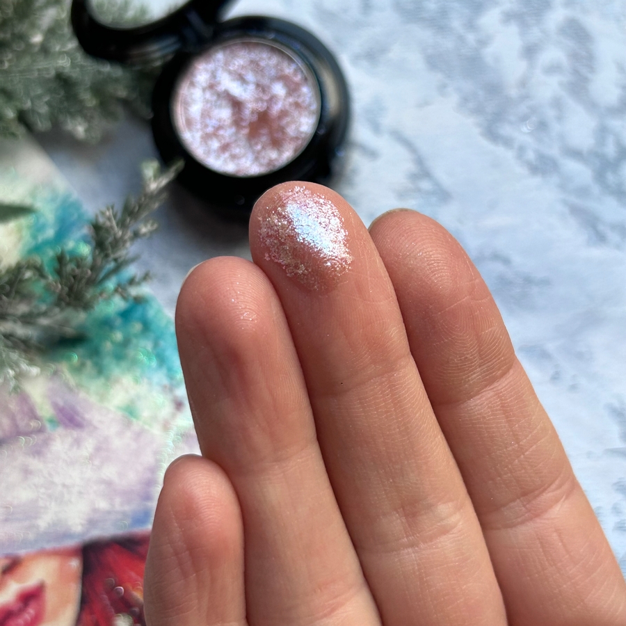 Текстура спаркла хлопьеобразная, рыхлая и при этом слегка маслянистая. Очень хорошо набирается на палец и распределяется по веку. Чтобы нанести максимально тонко я растираю по веку, а не вбиваю, так проще избежать осыпанией.