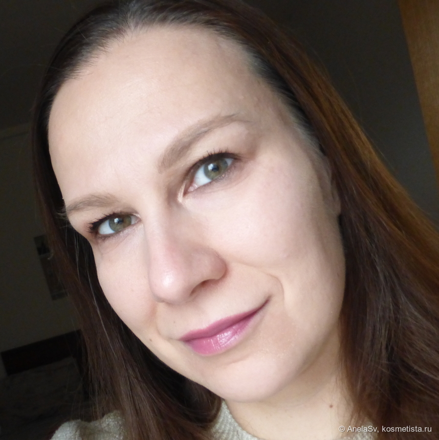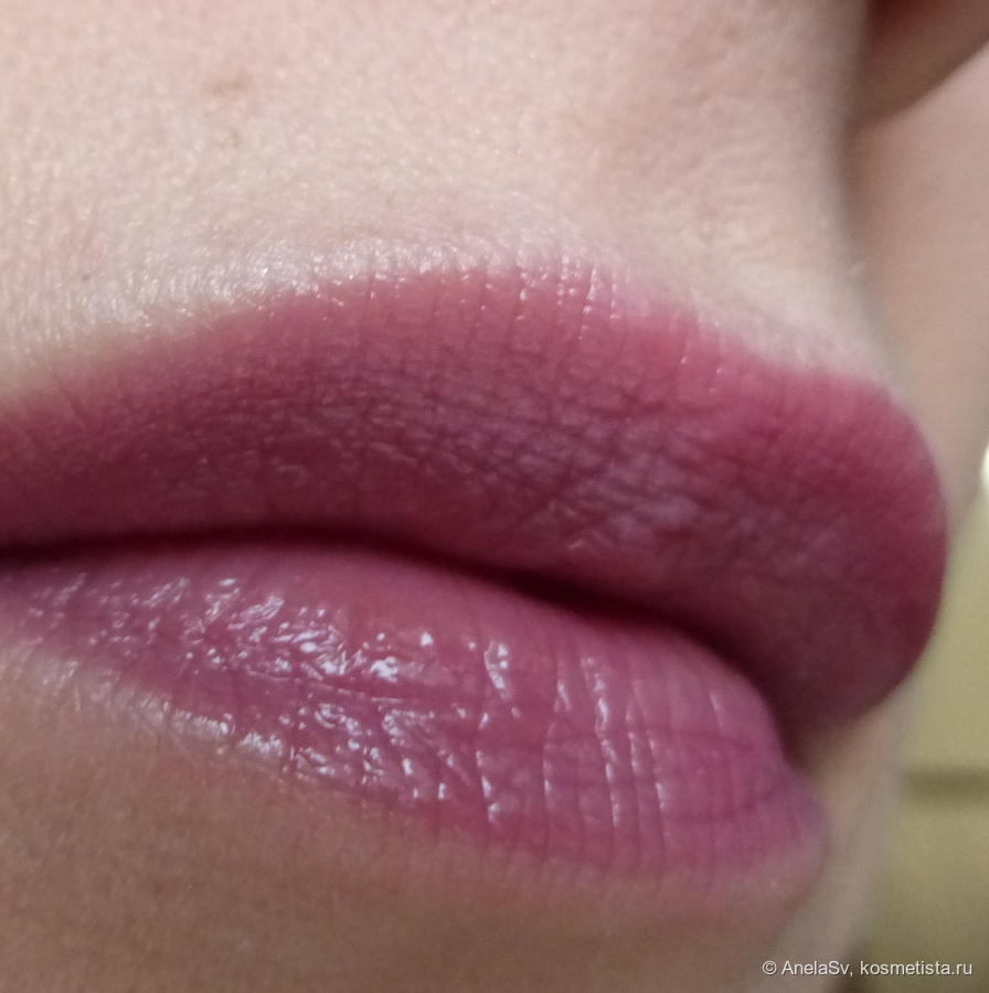 В итоге получился вполне достойный вариант среди стойких глянцевых помад. Мне понравились и оттенок, и общее поведение продукта в носке.
