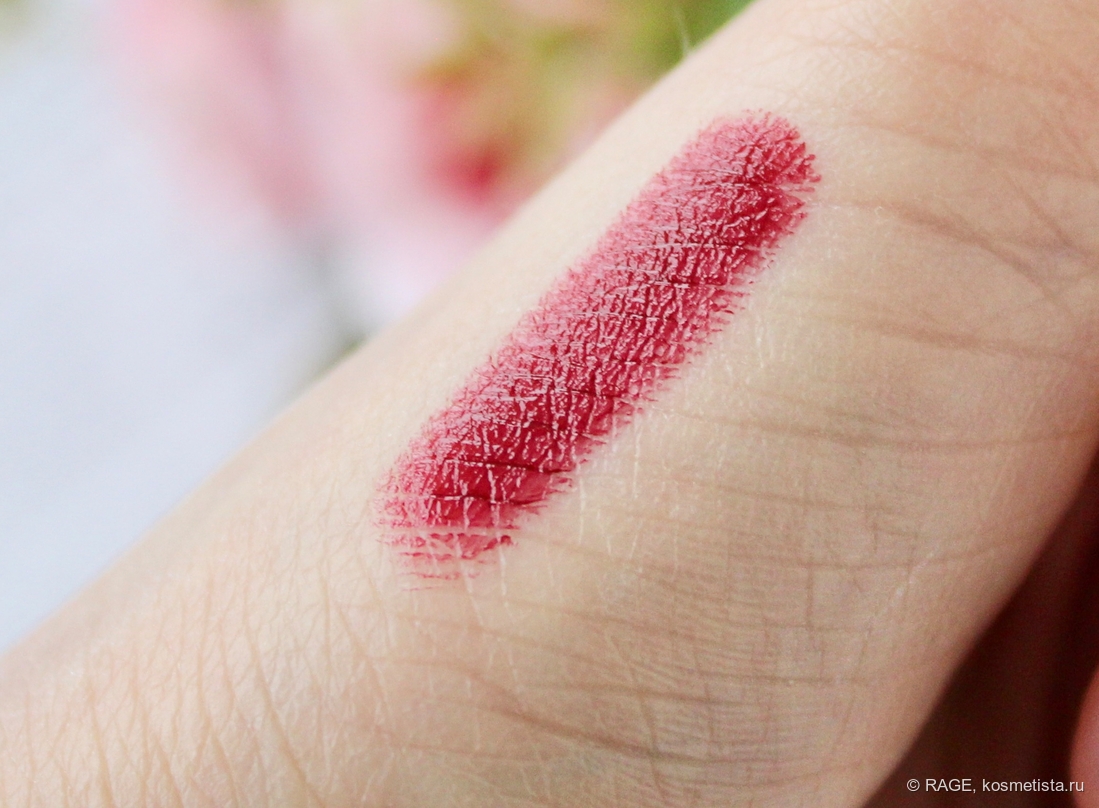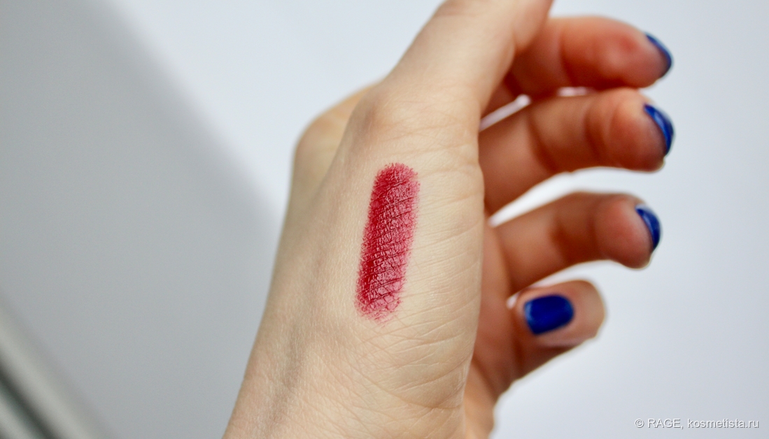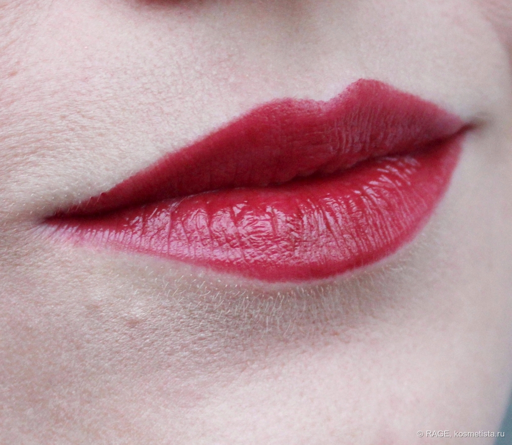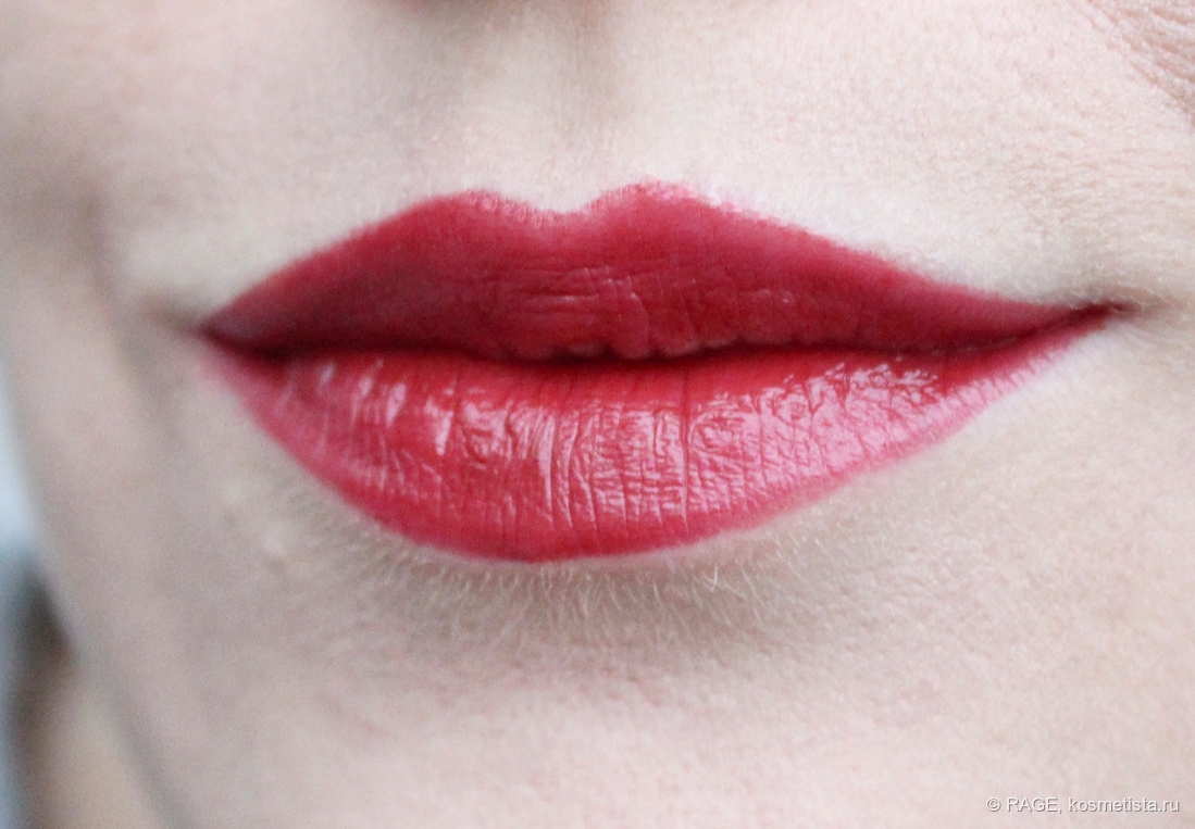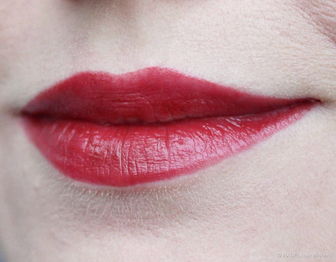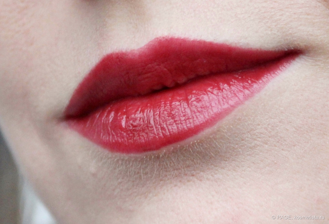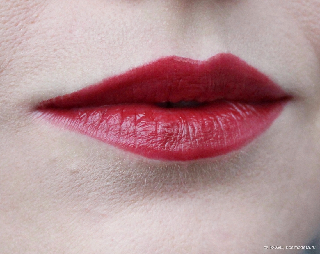 Поведение на губах идеальное: шелушения, морщинки и рельеф не подчёркнуты, за контур помада не убегает, у слизистой не скатывается.