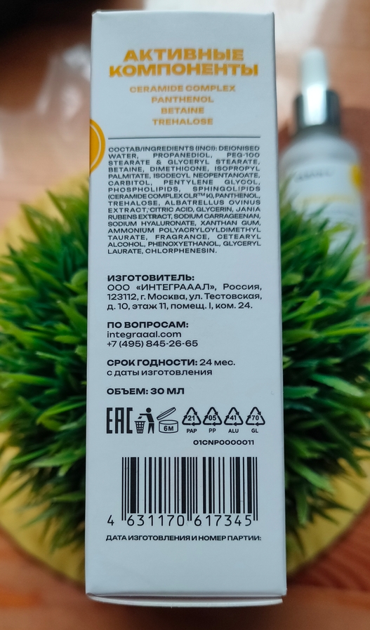 Кроме того в составе имеются такие компоненты, как экстракт морских водорослей, пантенол и гиалуроновая кислота.