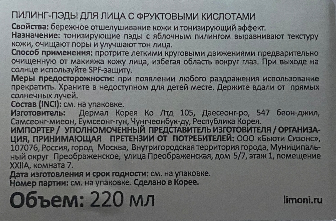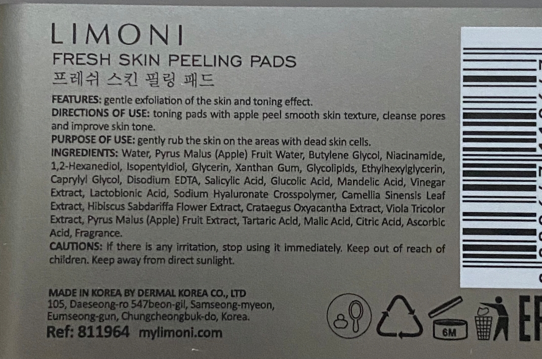 Более 10 лет назад я влюбилась в формат пэдов. Тогда я заказывала пэды для проблемной кожи из США на известном «зелёном» сайте, поэтому особенно приятно видеть, что за последние пару лет этот формат стал по-настоящему популярным. Конечно, первыми тренд подхватили корейские бренды, но за последний год, кажется, пэды не выпустил только ленивый 🙂 Сегодня хочу поделиться своими впечатлениями о Пилинг-пэдах для лица с руктовыми кислотами Fresh Skin Peeling Pads Cleansing & Narrowing от Limoni.