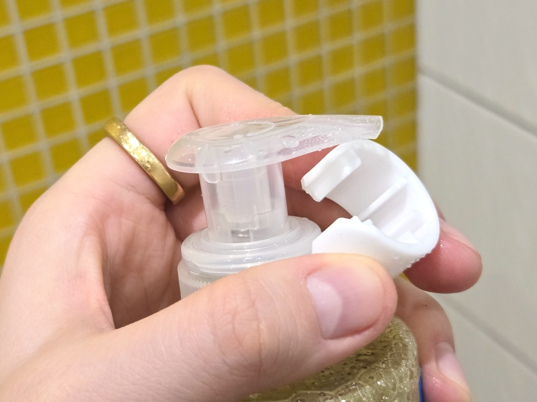 Дозатор стандартный у него, из хорошего пластика. Ничего не ломается, сам гель не плюётся, дозирует равномерно.