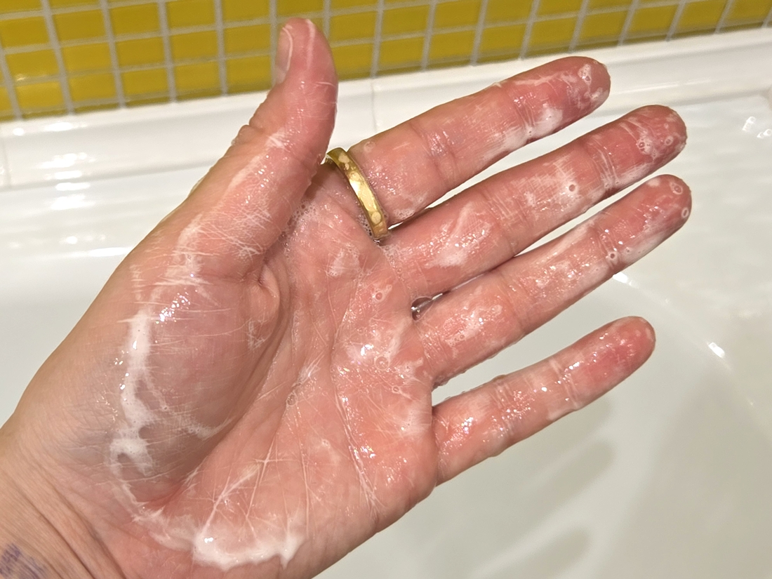 Пенится средство средне, и расход получается приличный, на мой взгляд, не хватает мне мылкости немного, люблю его побольше наносить на мочалку.