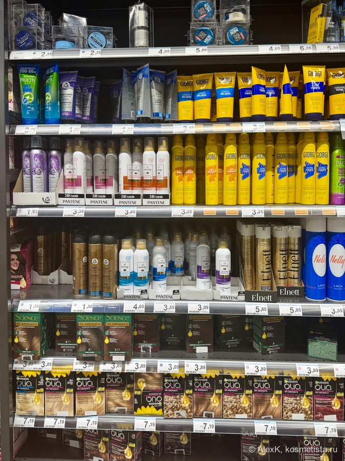 Там с косметикой все базово. Ничего такого, чего нет у нас. Ну, кроме Giorgi. Как я поняла, этот популярный испанский бренд, который специализируется на средствах для ухода за волосами и стайлинга. Говорят, соотношение цена/качества хрошее. Но я не пробовала, так как не умею делать укладки.