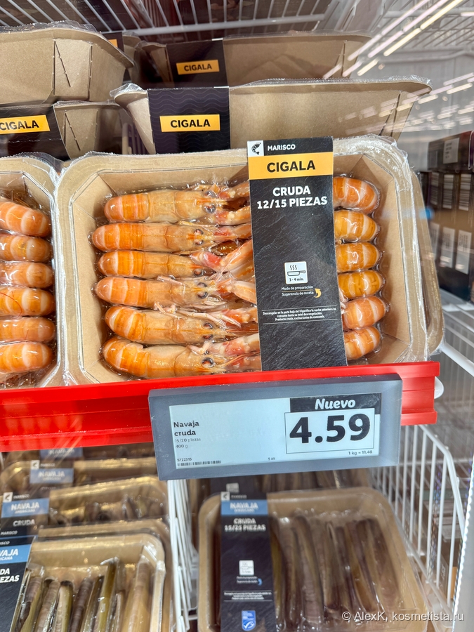 - Лангустины — здоровенные креветки, уже вареные, выходят в разы дешевле, чем простые креветки в России.