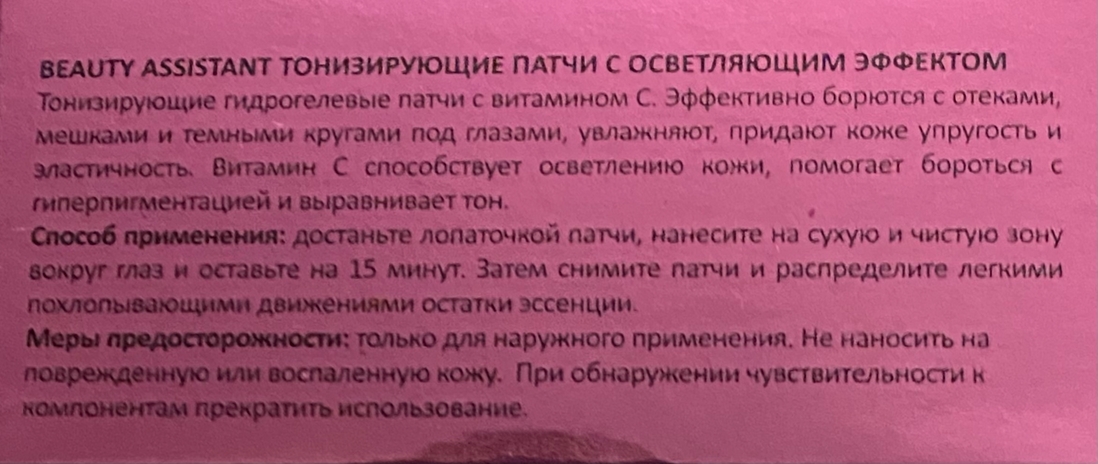 Кто меня периодически читает, тот знает мою любовь к патчам для глаз. Я пробовала разные: одни дают лёгкий эффект, другие посильней, но всё равно результат всегда, как говорится, «на лицо». И сегодня речь пойдет о Тонизирующих патчах с осветляющим эфектом Vitamin C eye mask от Beauty Assistant.