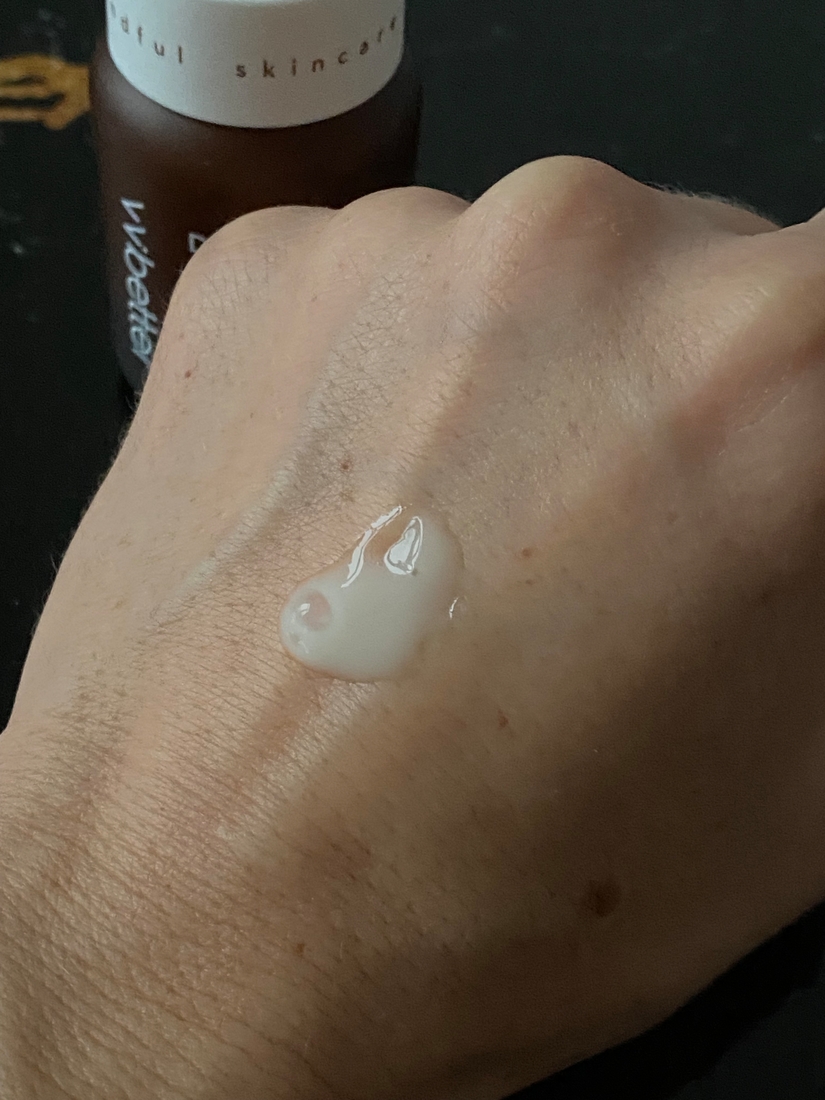 Сыворотка средней плотности, но не тяжёлая. Наносится легко, впитывается быстро, но на жирных участках ощущается скользкостью менее минуты.