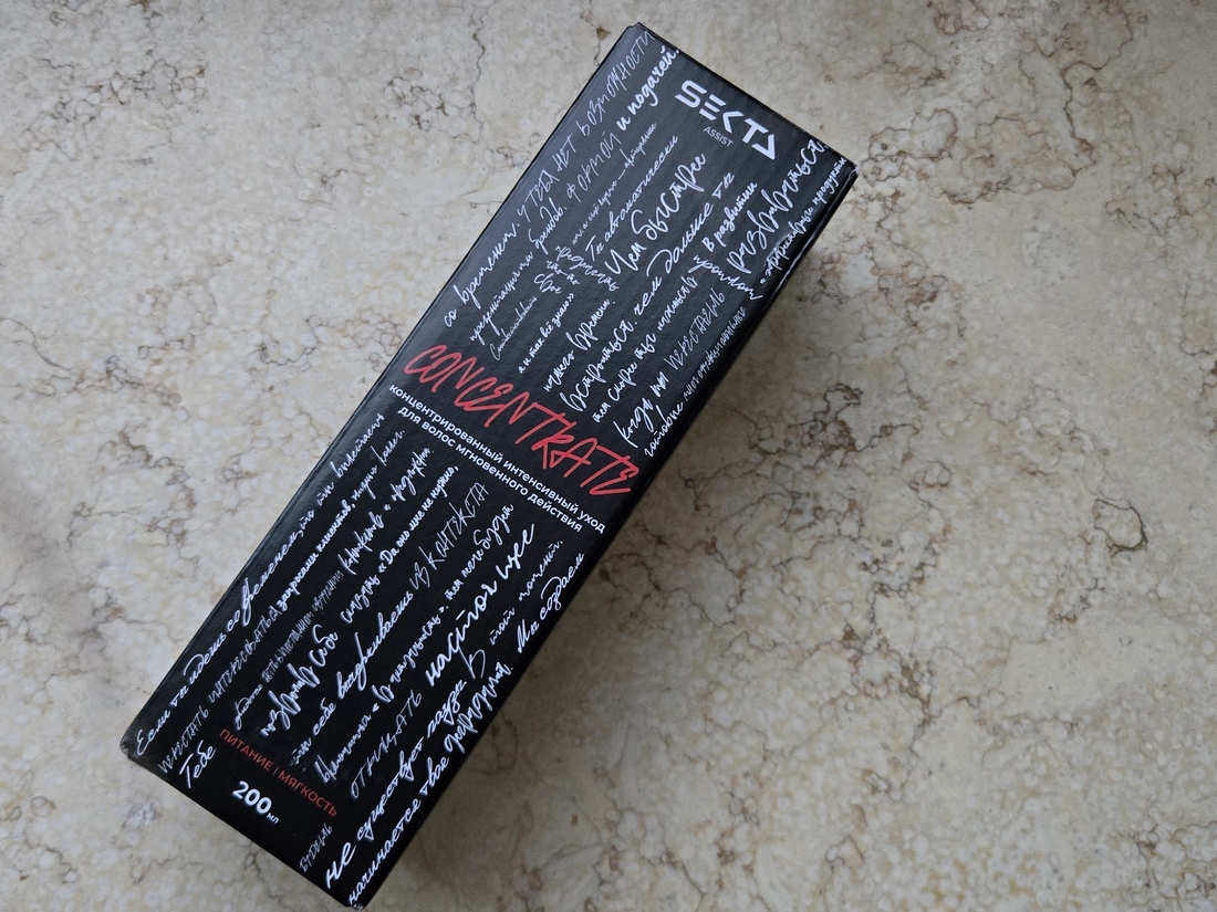 Изначально продукт приходит в коробке из плотного картона, запечатанной в плёнку. Но так как я везла эти средства в прямом смысле слова через Китай, то и коробку выбрасила ещё при получении продуктов. Очень жаль, что Hair Sekta при заказе наборов перестала выпускать классную «подарочкую» упаковку.