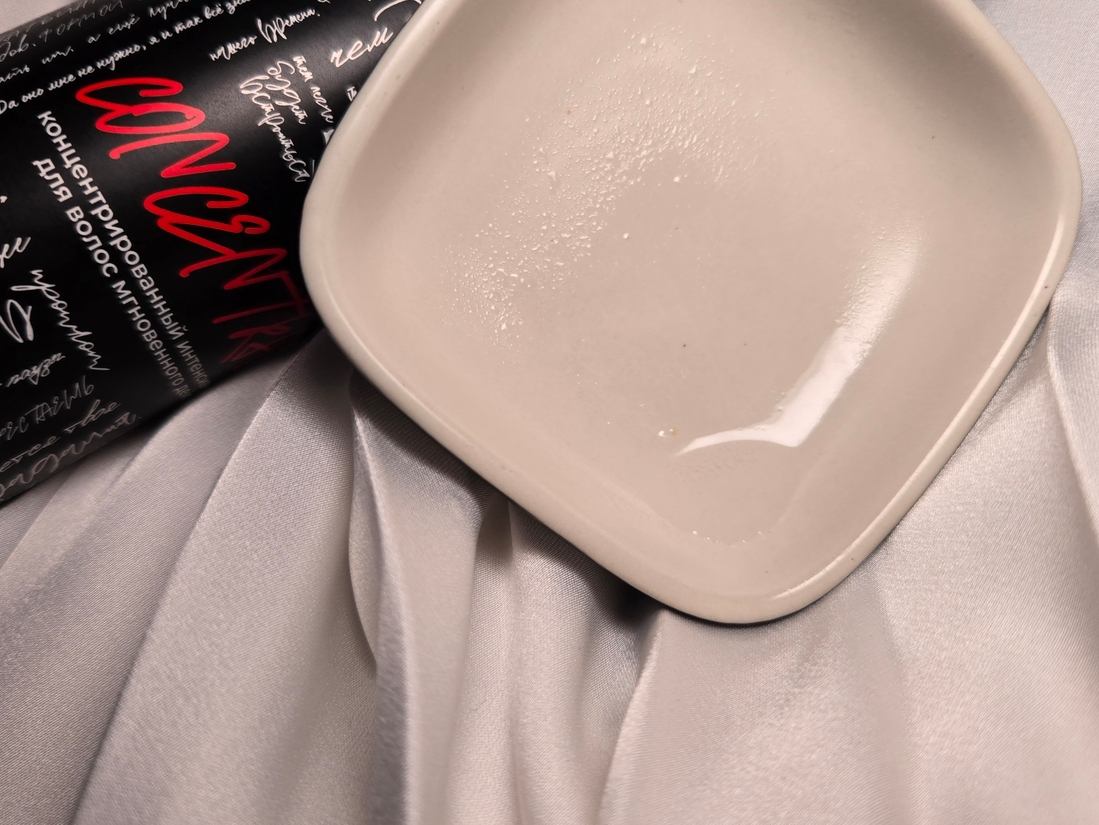 Цвета красный концентрат никакого не имеет, хотя было бы интересно, если бы он на самом деле был красным но без пигмнта, который оставляет след на волосах. На ощупь словно моментно увлажняющая сыворотка, которая тут же впитывается без липкости.