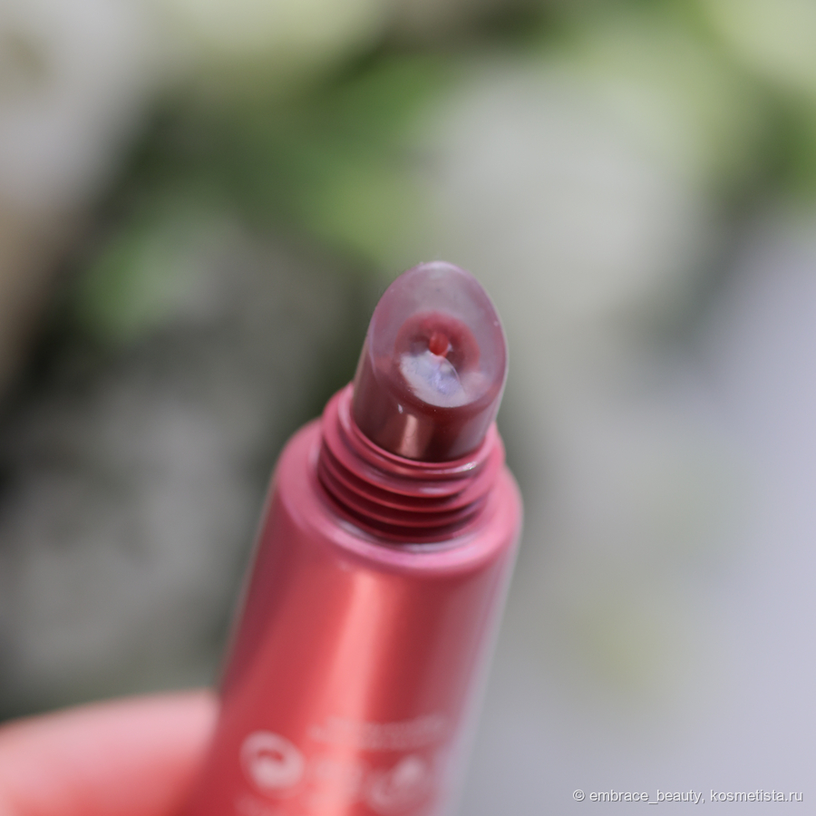 Внутри картонной упаковки мы найдем симпатичный пыльно-ягодный тюбик, который выполнен из качественного пластика. Основной тюбик с немного жемчужным переливом, а крышка просто гладкая, без внутреннего сияния.