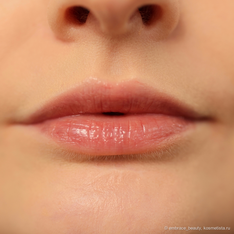 Ниже я нанесла продукт в один слой, выдавив буквально микро-горошины для верхней и нижней губы: